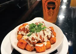 • Sloppy Tots - (GF) sweet potato tots topped with sloppy joe sauce, white queso and scallions. Pair with the Ruby Red Fruited Hazy IPA.