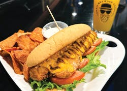 • Lake Erie Monster - (GFA) house dusted and fried jumbo walleye filet, remoulade sauce, lettuce and tomato on a toasted italian roll. Pair with the Shaka Brah Hazy IPA.