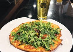 • Gusto - (GFA) grilled asparagus, prosciutto, smoked provolone, baby arugula and truffle oil. Pair with the Lorain Lite Lager.