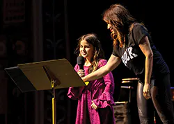 Students perform at the Palace Theater, where “for that day, they see their beauty and become a star,” Bradley says. Some students have become recording artists with songs on streaming platforms. The academy also hosts Rock Band workshops and adult ensembles.