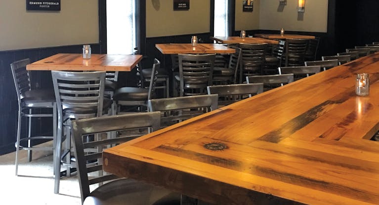 “We could only make so many changes to the structure, but it gives it some character,” Nemo says. For the interior remodeling that did take place, Bar NOVA made use of reclaimed wood from local barns in Grafton to fashion items including tables and the bar top.