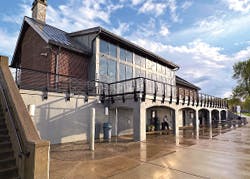 “We made that building as a nod to the bathhouse that was destroyed, using old photographs as reference for the shape and colors that were used,” says Ziemnik. “Today the Lakeview Bathhouse features the Sunset Terrace and Sunset Cafe, a very popular place to be with big windows up front. It can hold 100 people for special events.” The cafe is open for lunch during the summer months.